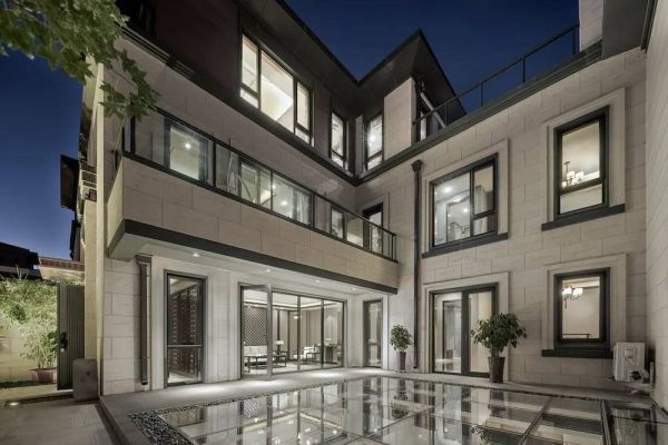 中式柱廊、花窗隔栅等元素与铃鹿石灰石墙面相得益彰、相互交叠,媲美真石材的浅米色墙身搭配深咖色线条,兼顾中式雅调与现代张力,勾勒出独特的东方美学神韵,身处社区却处处都能感受到传统文化的底蕴。