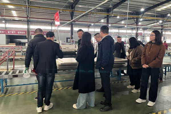 活动伊始,业主朋友们在AI家居重城中心总监谭林的带领下,参观了AI家居智能生产车间。谭总从原材料的选用、生产流程、质量管控及加工细节做了全方面的讲解与介绍,并就数字化智造家居生产线建设、环保板材加工、封边工艺升级等方面进行现场答疑。众多业主朋友们在观摩了AI家居全新PUR封边工艺和板材成品后,给予了高度认可。