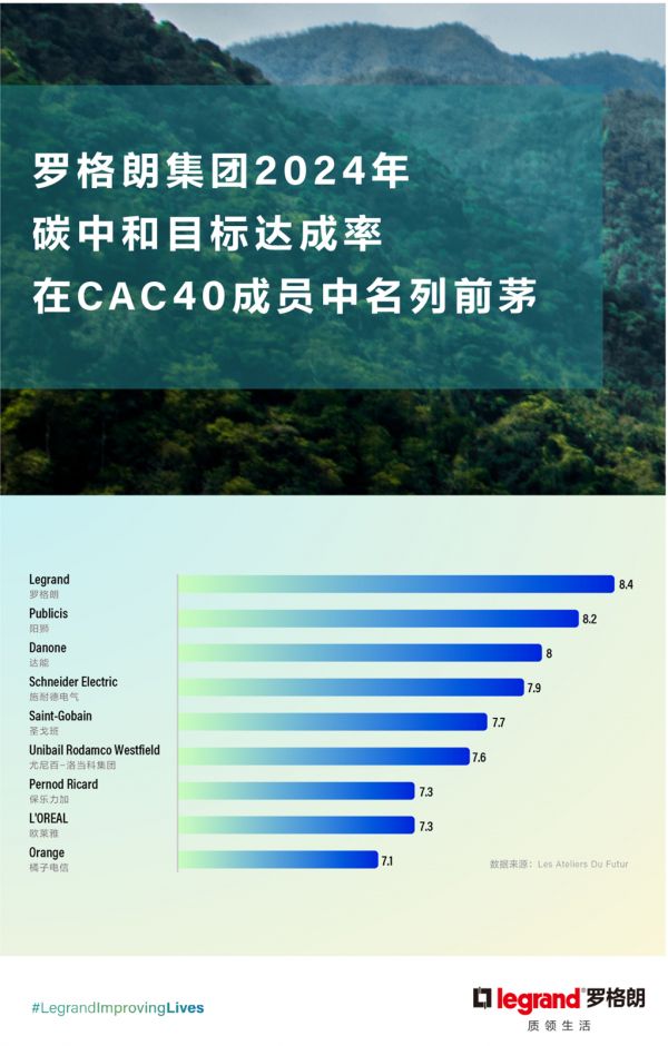 罗格朗集团2024年碳中和目标达成率在CAC40成员中名列前茅