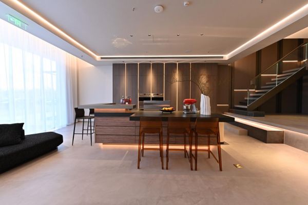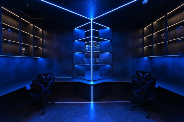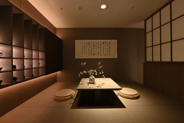 会客厅的二层,更是区别于传统的家居专卖店,拥有茶室、电竞房、儿童活动区、中西餐厨等生活、娱乐场景。电竞房区域融入了智能家居技术,如摩根智能操控屏,让灯光随心调控;中西餐厨区域则巧妙结合了中式厨房与西式厨房,并配备可容纳20余人的餐厅,既增添了生活的烟火气,又赋予了社交厨房的属性;茶室则是日式塌塌米设计,人们在这里尽可以轻松而悠闲地静坐、闲聊、发呆。一个小小的细节是:所有这些产品,全部来自KD定制。
