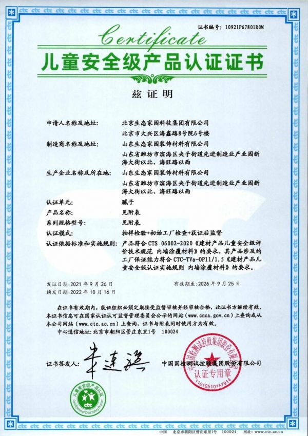 儿童级别的腻子,顾名思义,是指符合儿童安全使用标准的墙面腻子材料。它采用环保原料生产,无醛无害,且具有良好的装饰性和耐久性。生态家园儿童级健康腻子不仅关注产品的环保性能,还注重产品的实用性和安全性,确保儿童在居住环境中健康成长。