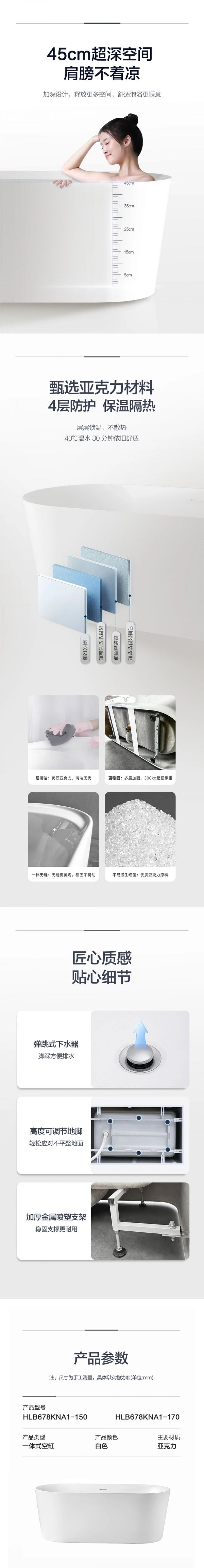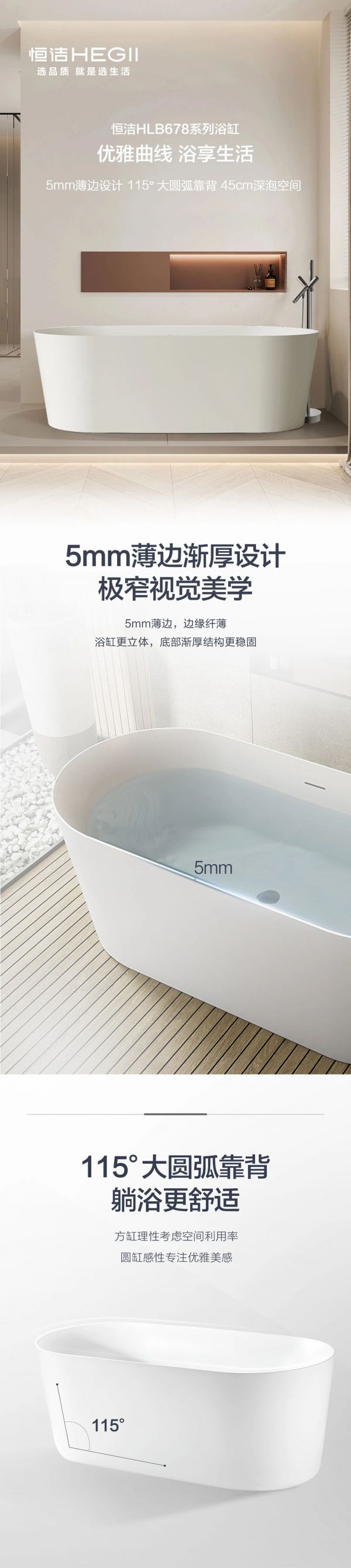 恒洁星品 恒洁HLB678系列浴缸,优雅曲线打造浴享生活