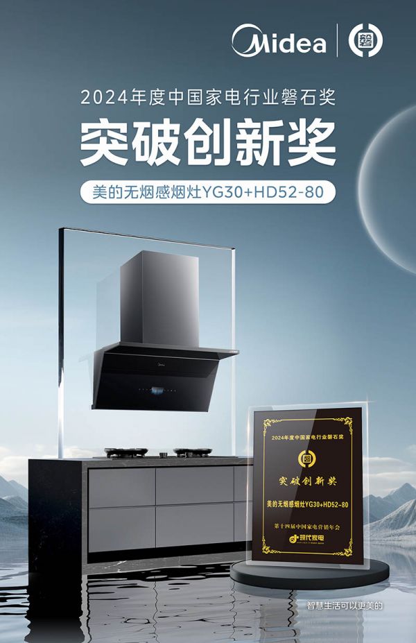 美的无烟感烟机YG30搭载AI控烟管家,集智能分流技术、智能净烟、智能蒸汽洗、智能烟灶联动四大创新科技,全面提升控烟、净烟效果,引领行业净烟高标准。针对中国家庭烹饪场景油烟忽大忽小,烟机无法精准识别双灶齐开油烟量,创新推出X—MAX动态双风道技术,能够智能识别左右灶油烟量大小,做到风量自主分配。同时,创新双重智控净烟技术,能够全方位感应油烟浓度和公共烟道压力实现自动风量调节,以5μg/m³的超高识别率和0.2秒的响应速度,真正做到烹饪全程0手动。与其配套的美的燃气灶HD52-80获得“烧水最快的燃气灶”福布斯世界纪录认证,凭借双内焰燃烧火型创新、4D定向补氧大火力、驻涡聚能超高能效3大国际领先科技,让烹饪火力更猛、更稳定、更高效,展现了美的技术创新行业领先地位,推动行业持续革新进化。美的无烟感烟灶YG30+HD52-80获得“突破创新奖”。