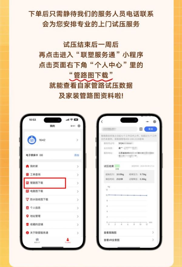 试压结束后一周后再点击进入“联塑服务通”小程序