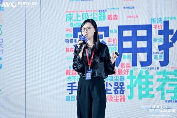 上海奥维云网东区业务总经理刘纾琪基于小红书平台数据,分析环境健康电器行业的内容营销趋势,指出行业竞争激烈,消费者对品牌认知度高,企业应关注不同品类功能需求和搜索热词,如清洁电器的多功能集成、净水品类的全屋净水和净热一体等,通过精准营销提升品牌影响力和用户购买转化率。