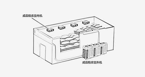 成品粮库专用空调顾名思义是针对成品粮仓储粮环境而设计,室内机采用射流风口超远距离送风且风力强劲,送风角度可自由调节,充分保证粮仓内温度均匀,整套系统采用变频控制技术,融入先进的变流量多联技术,系统节能高效。