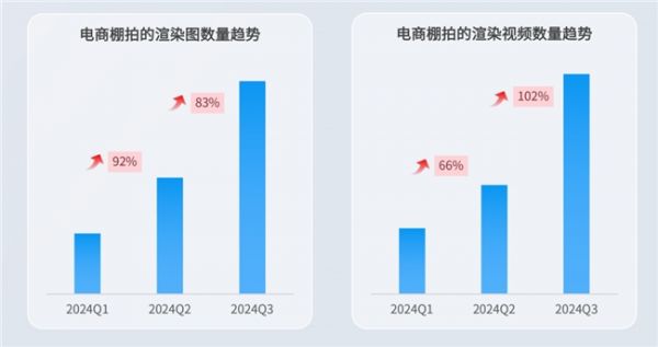 报告显示,跨境电商企业使用棚拍产品的企业数、渲染图量、渲染视频量每个季度都在以惊人的速度增长,尤其是在视频内容的输出量上。这意味着在出海浪潮中,跨境电商企业正越来越依赖这些数字利器,来提升商品展示效果,促进销售的转化。