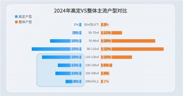 在这场改善型住房的浪潮中,高定家居企业今年的数据格外亮眼。根据报告显示,2024年,高定企业的方案量同比逆势增长超过10%,并且相比于整体主流设计户型,高定在110㎡以上的改善型户型明显占比更多。这似乎意味着,在消费升级的大背景下,改善型住房需求会成为市场的新引擎。
