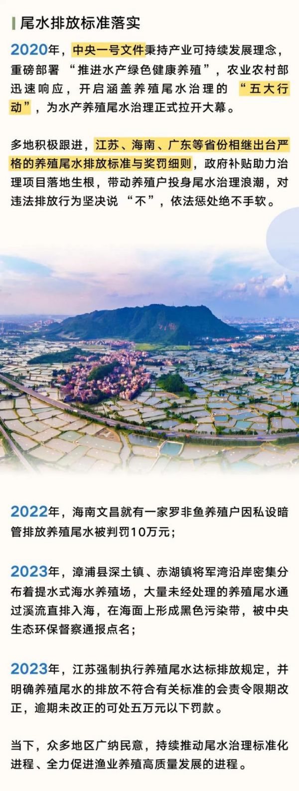 多地积极跟进,江苏、海南、广东等省份相继出台严格的养殖尾水排放标准与奖罚细则,政府补贴助力治理项目落地生根,带动养殖户投身尾水治理浪潮,对违法排放行为坚决说“不”,依法惩处绝不手软。