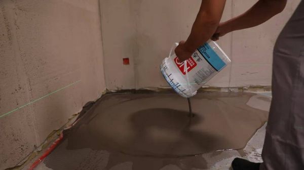初次搅拌:将自流平干粉材料缓慢加入清水中,持续搅拌3-5分钟。