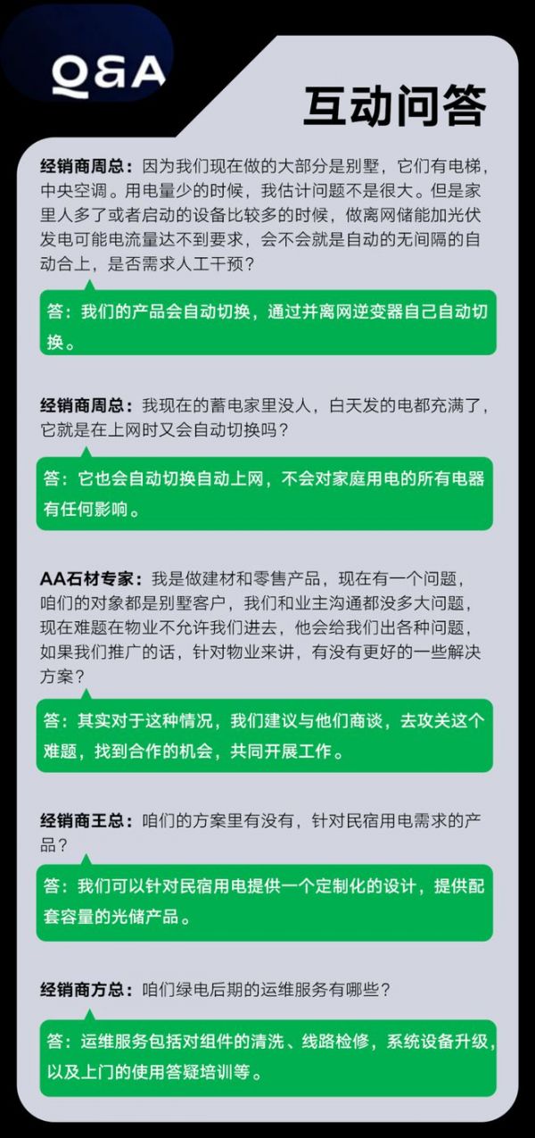 此外,论坛还设置了问答环节,与会嘉宾就太阳绿电业务的相关问题进行了提问和解答。联塑班皓太阳绿电业务相关负责人耐心细致地回答了嘉宾们的提问,并分享了公司在家庭绿电业务方面的经验和做法。互动问答