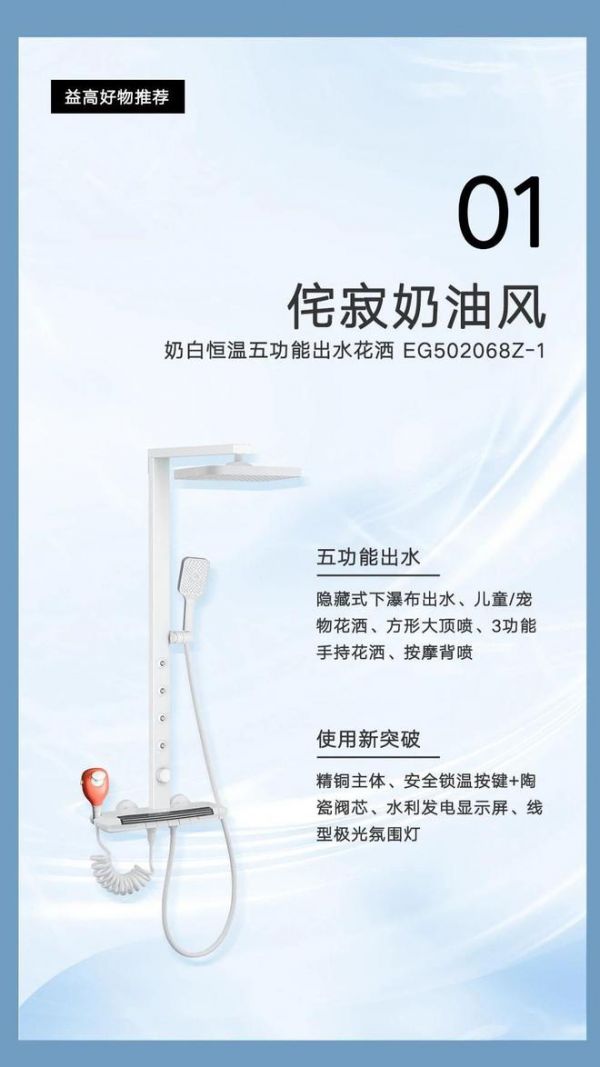 1、侘寂奶油风——联塑益高奶白恒温五功能出水花洒EG502068Z-1