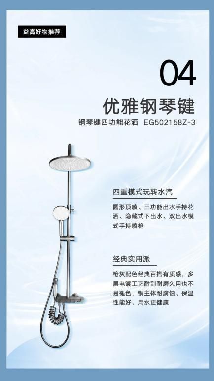 4、优雅钢琴键——联塑益高钢琴键四功能花洒EG502158Z-3