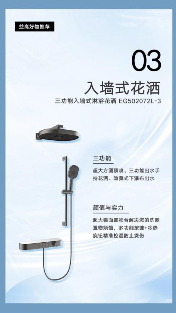 3、入墙式花洒——联塑益高三功能入墙式淋浴花洒EG502072L-3