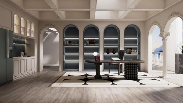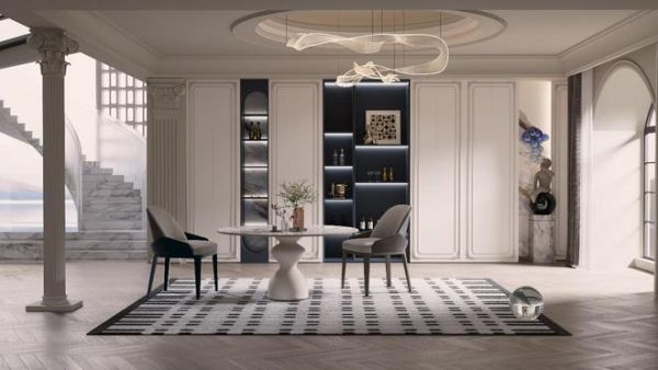 书房作为静谧的精神避风港,是知识探索与创意迸发的理想空间。线条圆弧装饰柜融合了古罗马经典圆拱造型,通体无缝且前口采用线条封边,散发中古法式韵味,在此阅读品书、挥洒创意,领略生活多元之美,创作专属艺术杰作。