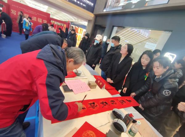 开幕式结束后,活动进入热闹祥和的书画笔会环节。会场内人头攒动,企业家、书画家、顾客及艺术爱好者齐聚一堂,喜庆和谐的气氛弥漫全场。大家对书画艺术展现出了极高的热情,欣赏展览和求取福字的人络绎不绝。近百位书画家现场挥毫泼墨,笔走龙蛇,创作了上千副春联和福字。每一笔每一划都饱含着对新年的美好期许,用精彩的书法艺术书写出新年的新气象、新风貌。其他会场同样热闹,年味十足,一张张福字、一副副春联带着吉祥的寓意,被送入千家万户。