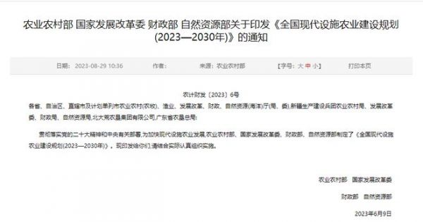 也许我们距离真正实现农业4.0还很远,但当下我国的农业发展已经初步实现了农业3.0的落实。虽然我国的农业3.0仍处于初级阶段,但相关的技术 、产业都已经拥有成熟的现代化解决方案,尽管产业链其他环节的信息化、经济化程度较低,但终归是要迈出的“技术”这个重要一步。目前国家也非常重视农业现代化的建设,并在2023年8月发布了《全国现代设施农业建设规划(2023—2030年)》并正式开始实施。