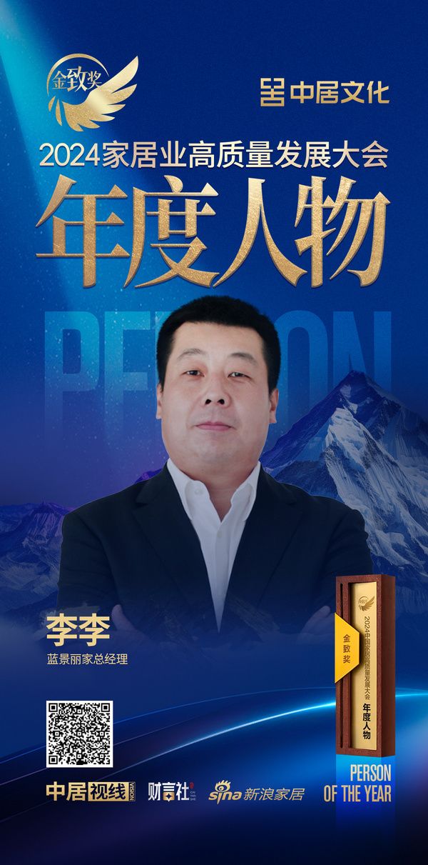 其中, 蓝景丽家总经理李李凭借其在行业内的卓越贡献与前瞻性思维,荣获「金致奖 2024中国家居高质量发展大会年度人物」殊荣。