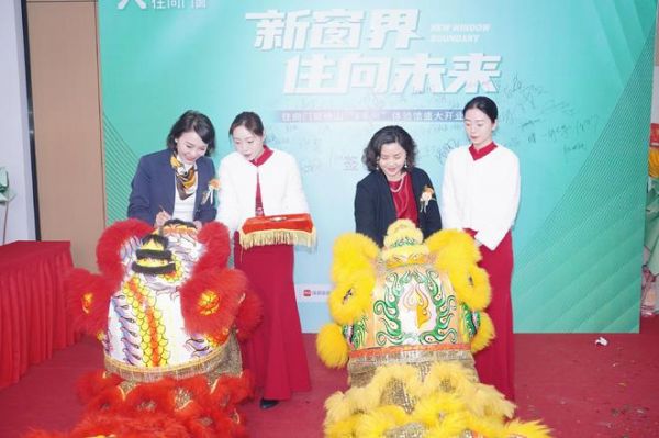 剪彩仪式后,醒狮点睛环节将现场气氛推向高潮。廖敏女士和杨砚涵女士手持金笔,为祥狮点睛,寓意着住向门窗在新的一年里生意兴隆,财源广进。醒狮舞动,锣鼓喧天,现场观众无不为之振奋,共同感受传统文化与现代科技的完美结合。醒狮的威武与门窗的精致相得益彰,展现出住向门窗在传承与创新中的独特魅力,也象征着品牌将在新的一年里如醒狮般活力四射,勇往直前。