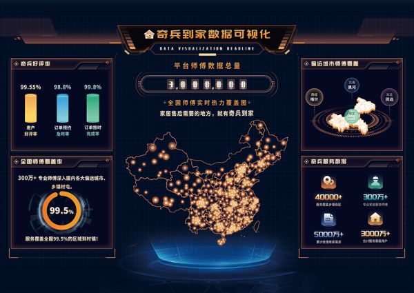 奇兵到家的服务网络遍布全国99.5%区域至村镇,商家可以借此打开下沉市场,将产品售往全国每一个角落,实现业务的广泛布局和深度渗透。此外,平台还提供全方位的售后服务保障,包括一年质保承诺、先行赔付等,让商家无需为售后服务问题而担忧,只需放心托管。