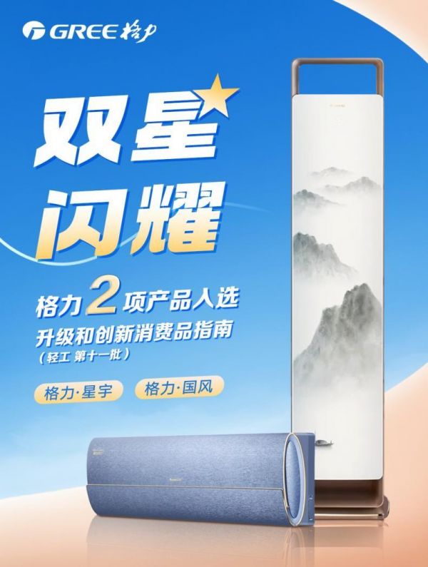 近日,由工业和信息化部消费品工业司指导,中国轻工业联合会组织编制的《升级和创新消费品指南(轻工 第十一批)》名单正式公布。格力·星宇空调上榜“升级消费品”名单,格力·国风空调上榜“创新消费品”名单。两项产品入选国家级消费品指南,充分彰显了格力在科技赋能、品质提升方面的卓越实力。