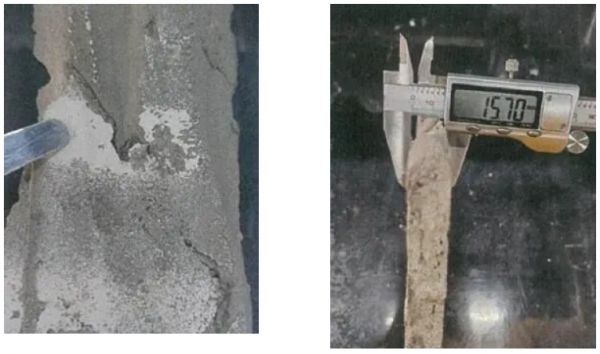 部分胶块背面粘有白色腻子层,这说明基层不坚固;部分胶块与墙面的有效粘结面积仅为60-80%且胶块厚度大,达到15毫米。