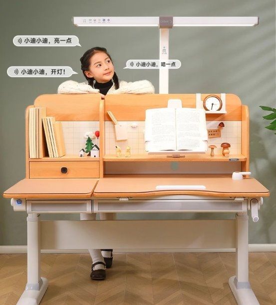 这款台灯堪称学习桌的 “最佳拍档”,它的安装位在学习桌的背面,巧妙地避开了空间占用的雷区,让桌面空间瞬间变得宽敞,孩子可以自在地伸展身体,自由地拿取桌上的物品,学习起来更加得心应手。