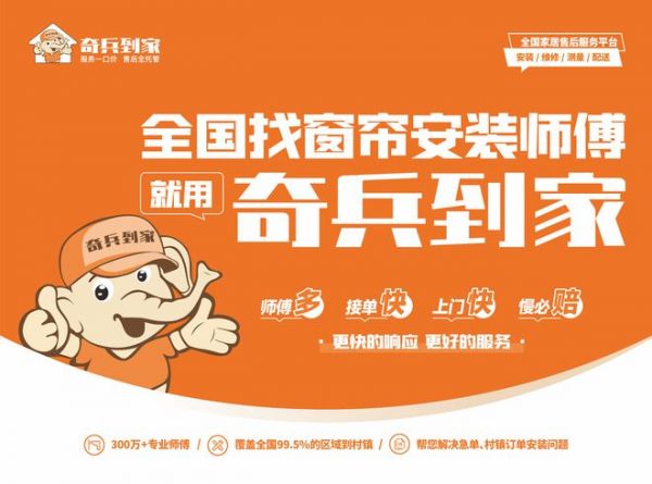 更省心的服务,优化客户体验 在窗帘布艺行业,售后服务是客户体验的重要环节。无论是智能窗帘的安装调试,还是定制窗帘的测量与维修,都需要专业、高效的售后服务支持。奇兵到家的服务覆盖全国99.5%区域,下单3秒响应,1小时内师傅预约上门,精准匹配距离最近且技能适配的师傅,快速响应客户需求,有助于提升成交率,帮助商家在激烈的市场竞争中脱颖而出。 奇兵到家拥有超过300万的专业师傅资源,能够提供安装、维修、测量和配送等一站式售后服务。这种高效的服务模式不仅提升了消费者的购物体验,还增强了品牌信任度和用户忠诚度。在销售旺季,奇兵到家的庞大师傅资源库能够有效缓解安装资源紧张的问题,避免因师傅不足导致的订单延误。此外,奇兵到家还推出“慢必赔”服务承诺,全方位保障商家权益。