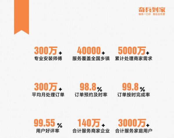 明日,B108-1展位,奇兵到家将为参展商和采购商提供全方位的售后支持。更快的响应,更好的服务,快速找师傅,就用奇兵到家,为家居电商带来安装、测量、维修、配送等一站式服务的高效体验,实现品牌服务升级,提升差异化竞争力。