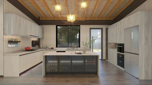 在颜值经济盛行的当下,厨房不仅是烹饪的场所,更是展现主人品味与生活态度的空间。领尚家居将美学理念融入产品设计之中,尤其是嵌入式电器,如冰箱、烤箱、微波炉等,完美嵌入橱柜之中,实现了空间利用的最大化。在视觉上,这些设计形成了统一和谐的整体效果,提升了厨房的整体美感。这种一体化设计,既满足了现代家庭对空间整洁度的要求,也彰显了主人对生活品质的不懈追求。此外,领尚在橱柜外观设计上同样不遗余力,提供了多种风格迥异的选项,从简约现代到复古奢华,每一种风格都经过精心设计,旨在满足不同消费者的个性化审美需求。板材纹理丰富多样,既有自然木纹的温馨质朴,也有现代金属的冷峻时尚,让每一位用户都能找到与自己生活方式相契合的那一款。