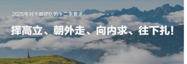 干部是战略目标实现的根本,2025年对干部团队提出十二字要求:择高立、朝外走、向内求、往下扎!