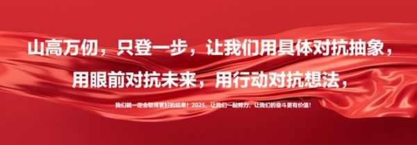 “山高万仞,只登一步”,让我们用具体对抗抽象,用眼前对抗未来,用行动对抗想法,我们就一定会取得更好的成果!2025,让我们一起努力,让我们的奋斗更有价值!