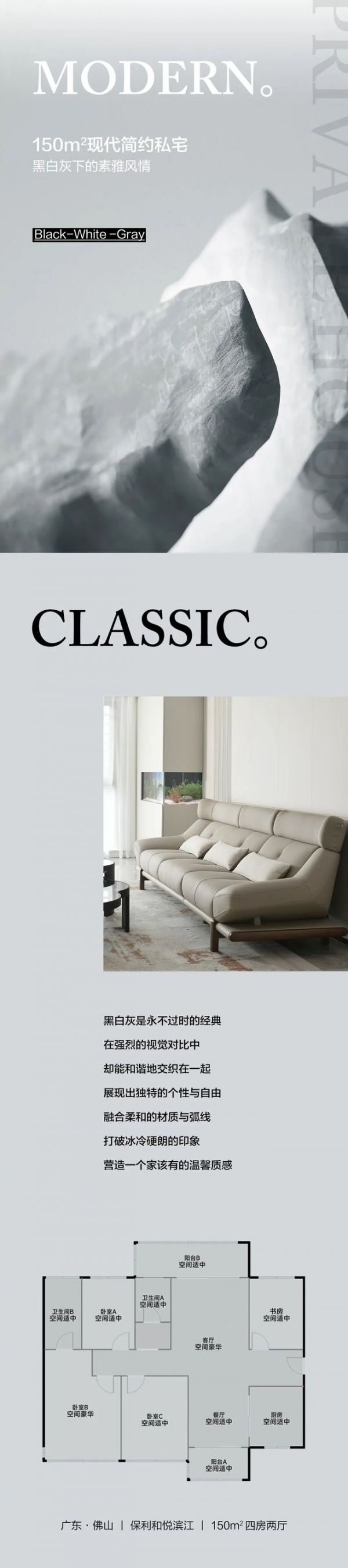 联邦家私:150m²现代简约私宅,黑白灰下的素雅风情