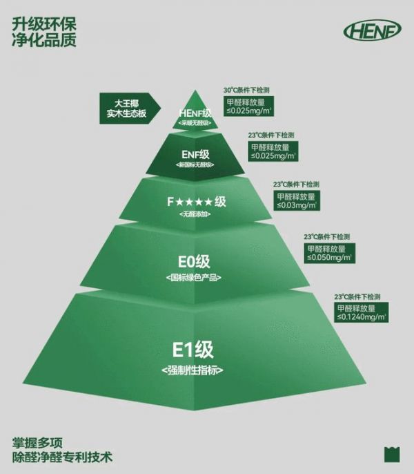 HENF级作为“天花板”级环保标准,要求产品在30℃高温环境下甲醛释放量≤0.025mg/m³,检测条件较ENF级(23℃)严苛,是环保品质的一大跃升。
