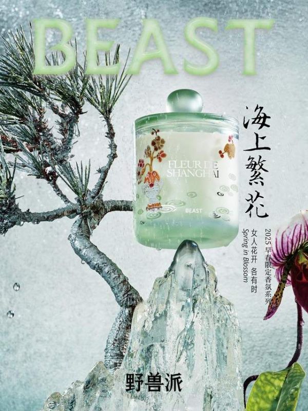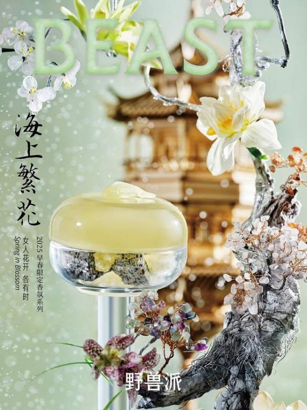 野兽派2025海上繁花香氛系列“女人花开各有时”,新品系列视觉设计融合艺术作品《海上繁花》绘画元素,并献上主题同名新香「海上繁花」。
