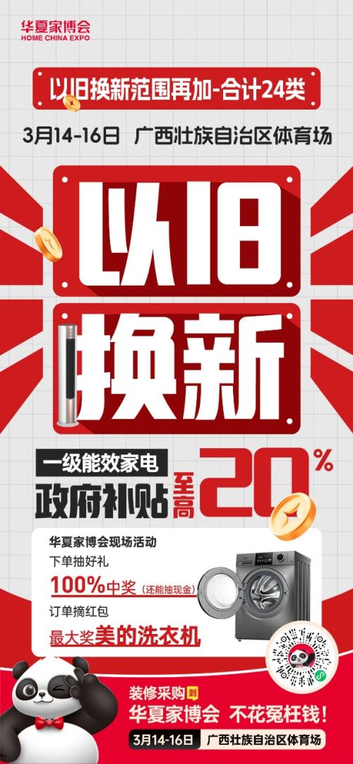 为了让南宁市民在家居焕新过程中能享受到实实在在的优惠,华夏家博会特别结合国家政策,推出了以旧换新活动。个人消费者购买符合条件的2级能效家电产品,可获得最终销售价格15%的补贴;购买1级能效家电产品,可获得最终销售价格20%的补贴。这一补贴政策覆盖范围广,品类丰富,真正让消费者在追求品质家居的同时,还能节省开支,轻松实现家居升级。
