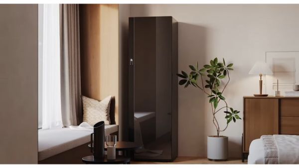这款蒸汽衣物护理机内部配备灵活的摆动衣架,在工作时可实现每分钟350次摆动,有效减少衣物微尘,帮助去除灰尘和异味,保持衣物清新。如果衣服掉落,智能监测系统可通过液晶显示屏或LG ThinQ应用程序自动通知用户。