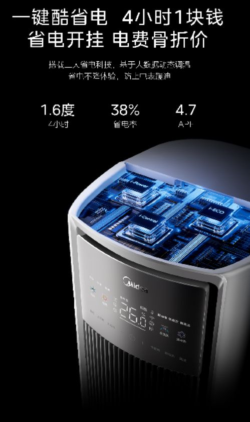 在省电方面,美的全面风空调搭载了最新一代“酷省电科技”,在i-Power酷省架构、i-ECO酷爽算法、i-Control酷智管理三重加持下,可实现省电率38.2%,4小时电费低至1块钱,并可通过APP实时查询电量,让省电效果一目了然。