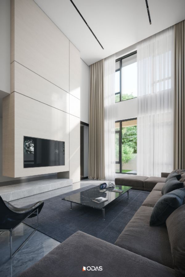这座611㎡的别墅摒弃浮华,以黑白灰三色为基调,通过光影渐变与简约材质构建空间秩序。客厅挑空处的悦风110外开窗纱一体窗,以超窄边框与全景玻璃消弭室内外界限,山风穿堂而过,白色纱帘随风轻舞,湿润的海风裹挟着自然气息浸润每一寸空间。窗纱一体的设计兼顾通风与防蚊,4SG玻璃的隔音隔热性能,让喧嚣止步于窗外,只留山海的低语与家人的笑语交织成诗。