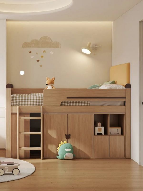 ①选用青少年半高床,集储物+休息功能于一体,安全又温馨。