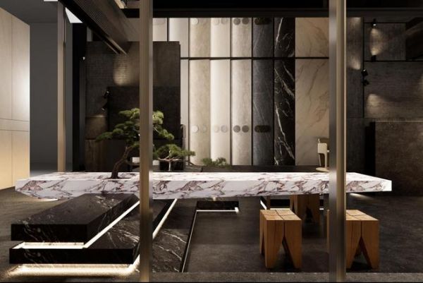 “岩叙·重构——新岩素岩板美学馆”以岩板为媒介,通过精湛的工艺和设计,将自然原石风貌再现,展示了设计灵感的不竭源泉以及应用艺术的恒久延续。