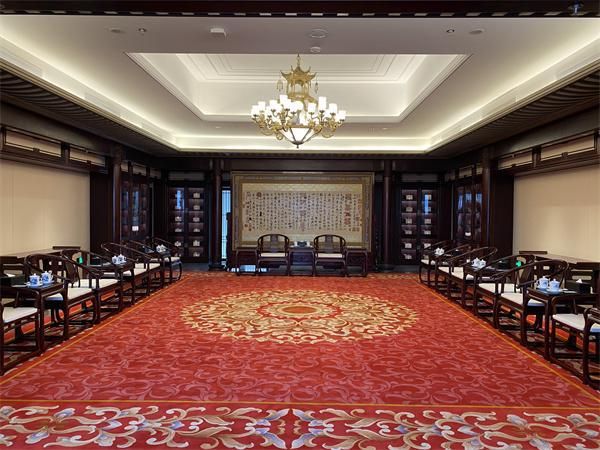 《文瀚椅》,是国方家居专为中国国家版本馆中央总馆文瀚阁五层贵宾厅设计的“贵宾”椅,以经典皇宫椅制式为原型,结合国家版本馆这一特定的使用场景加以创新和改良。保留皇宫椅经典的“天圆地方”造型,去除背板、扶手、腿足等处的雕刻,将椅圈、腿足、底贯等部分略加粗,提高文瀚椅整体的庄重和威严。