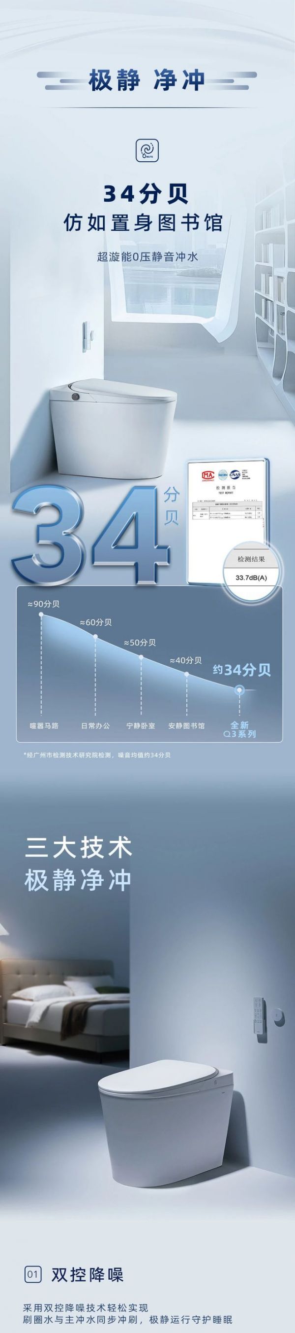新品上市 I 恒洁全新Q3系列智能马桶,极静护眠,净冲无忧
