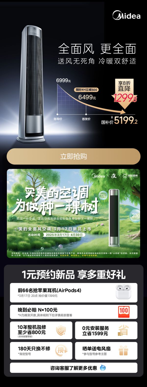 美的全面风空调正式开售,首创全面风科技,舒适从此无死角