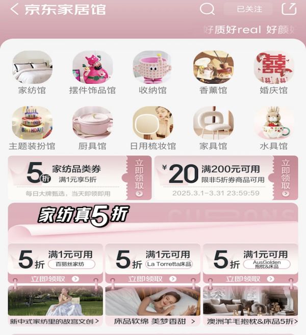 从温馨的床品到精致的家居小物,每一件商品都承载着提升生活品质的美好愿景。打开京东APP搜索“京东家居馆”,解锁3月超级18活动的重磅优惠,为日常家居生活增添一抹亮色吧!