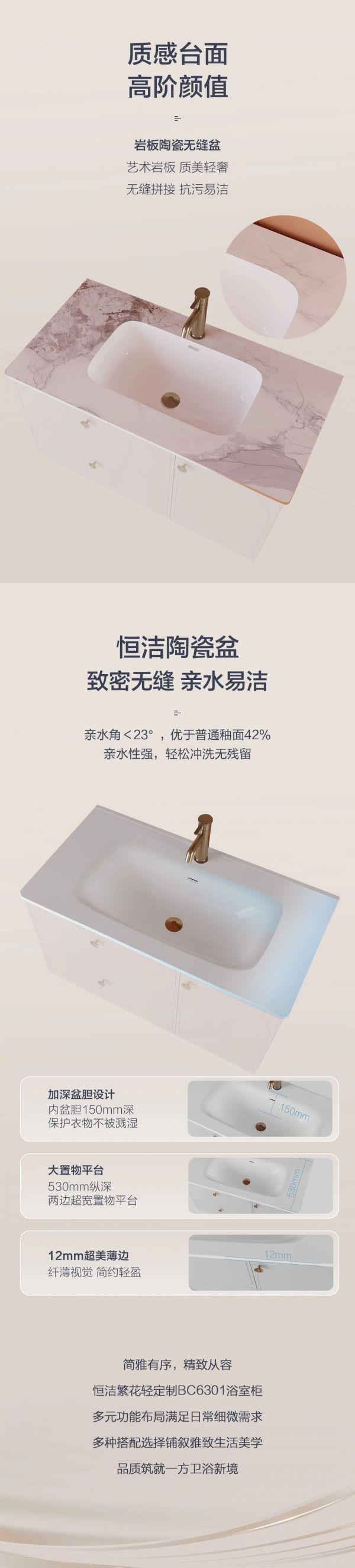 恒洁BC6301繁花轻定制浴室柜 法式经典元素 勾勒浪漫生活