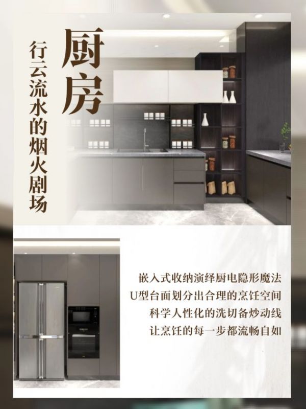 厨房,在领尚的设计体系里,不仅仅是烹饪场所,更是展现生活品质与个性的空间。领尚 U 字型厨房设计,巧妙地对空间功能进行明确划分,通过人性化的动线规划,让烹饪过程更加自如流畅。在这里,下厨不再是繁琐的家务,而是一种享受生活的方式,每一次操作都能感受到领尚设计对生活细节的关注。