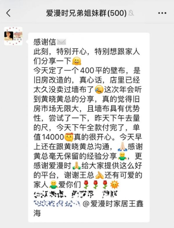 每到一家门店,王鑫海都着重强调“老房翻新”赛道的潜力与布局的紧迫性。他认为这是顺应市场趋势的明智之举,并非盲目跟风。当同行还在观望时,爱漫时要率先将标准化、高效的老房翻新服务推向社区。内蒙古的黄总在江山年会上了解到老房翻新思路后,回当地迅速成交了一单14000元的老房改造墙布订单。这一实例充分证明了爱漫时在旧改领域战略布局的正确性。据市场调研,随着城市化进程加快,老房翻新市场规模每年以两位数增长。为更好开拓旧改市场,公司将组织专业团队研发旧改产品系列,推出一站式解决方案,涵盖墙面、地面翻新及空间优化等,为客户提供便捷、高效的服务。