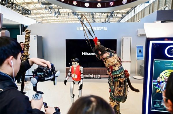 2025年3月20日,上海AWE展场的聚光灯下,一场看似普通的"人机对话"正在悄然开启AI科技的新篇章。宇树科技机器人抬起机械臂,对着海信电视发出指令:"海信小聚,播放《APT》。"当欢动的旋律流淌而出,机器人和悟空Coser开始斗舞,现场观众或许不知道,这个简单的跨设备交互场景,实则是中国科技企业在AI领域三大赛道——机器人、显示芯片、人工智能协同突破的缩影。