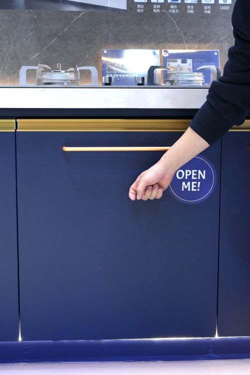 魔法门板系统:轻敲即可开门,支持岩板、木纹等多种定制面板,与橱柜实现“零界融合”。